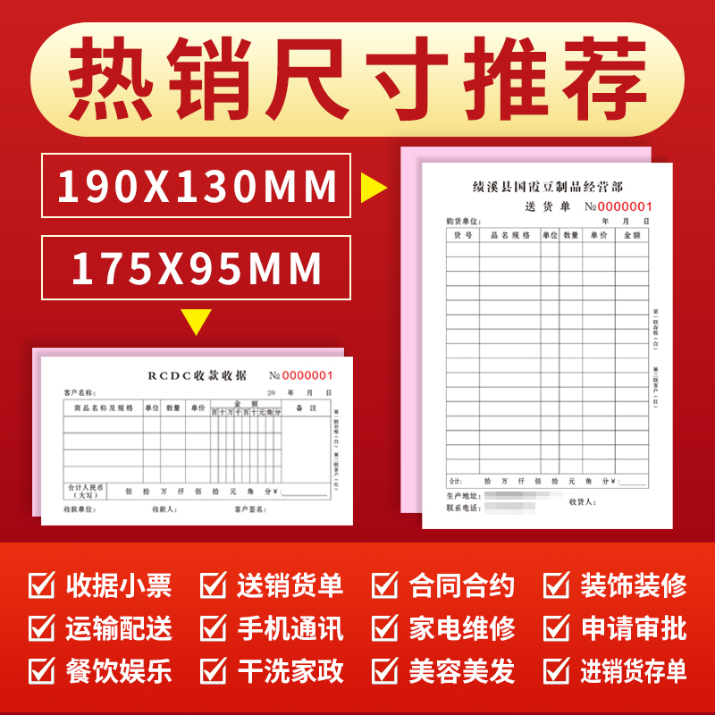 单据定制收据订制销售单送货单印制报销单两联三联定做二联四联点菜单开单本合同出入库订货发货订单票据印刷