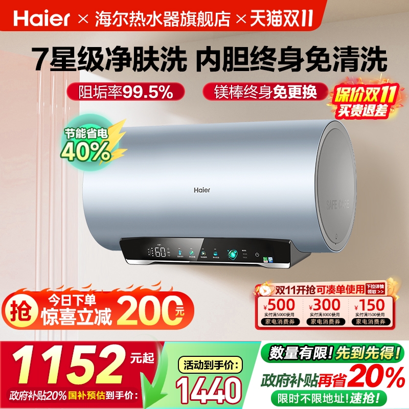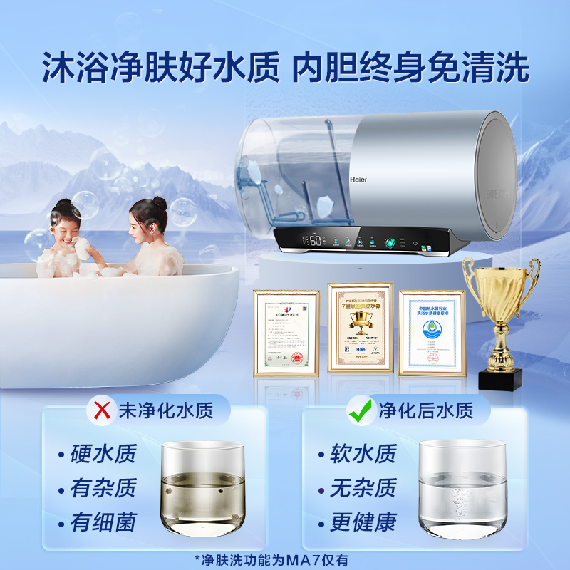 海尔电热水器官方净肤洗家用洗澡镁棒以旧换新补贴60升一级MA7
