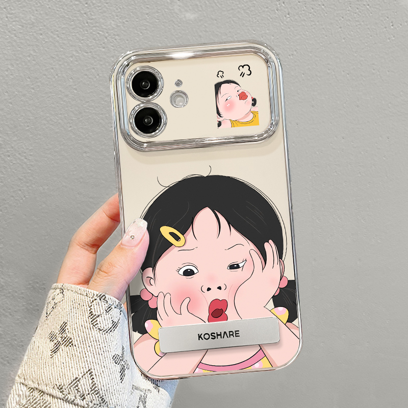 适用苹果11手机壳新女款iPhone15promax/13电镀银16/12软硅胶xs/xr挤脸女孩支架14plus防摔6D视窗保护套高级