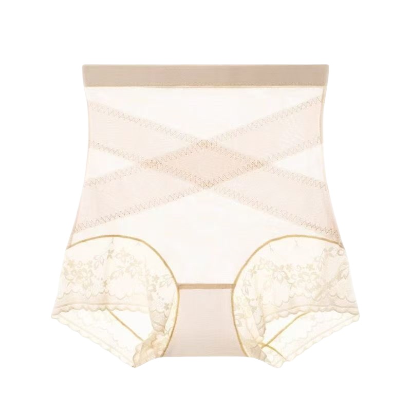 高腰无痕提花蕾丝内裤女性感提臀收腹透气蚕丝三角裤强力塑身中腰