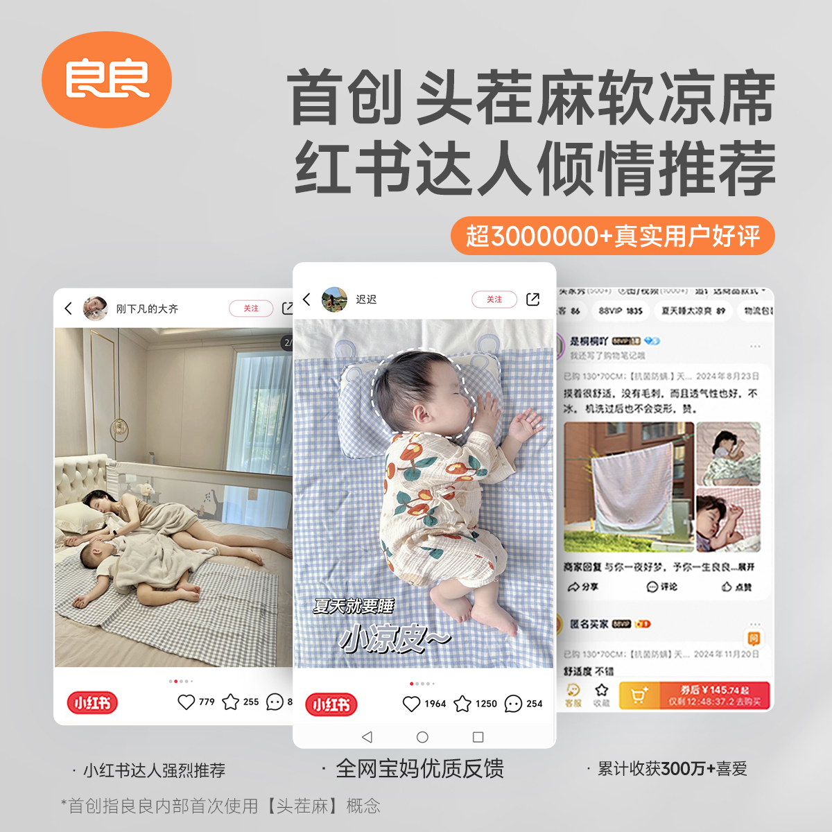 良良婴儿苎麻凉席宝宝专用坐垫婴儿拼接床可用儿童幼儿园午睡席子