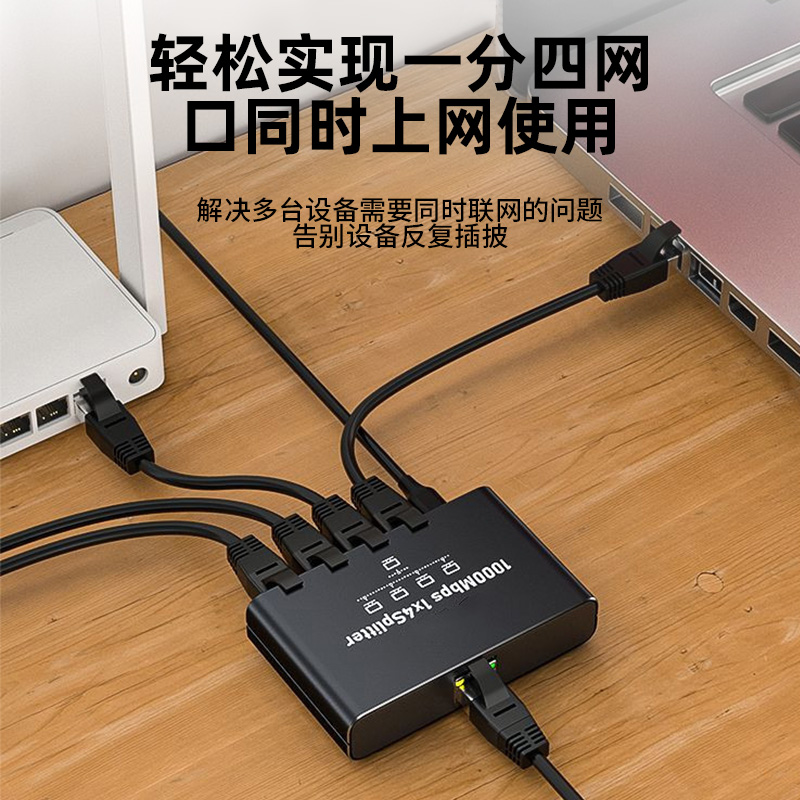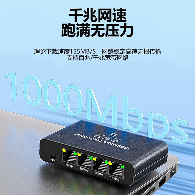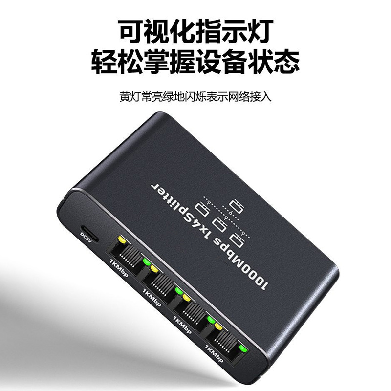 千兆网络分线器一分二一分三一分四同时上网一进多出一拖二一拖三网线接口转换器一分多一转二网口1分2分