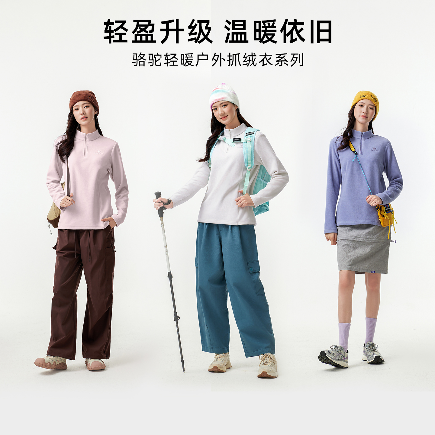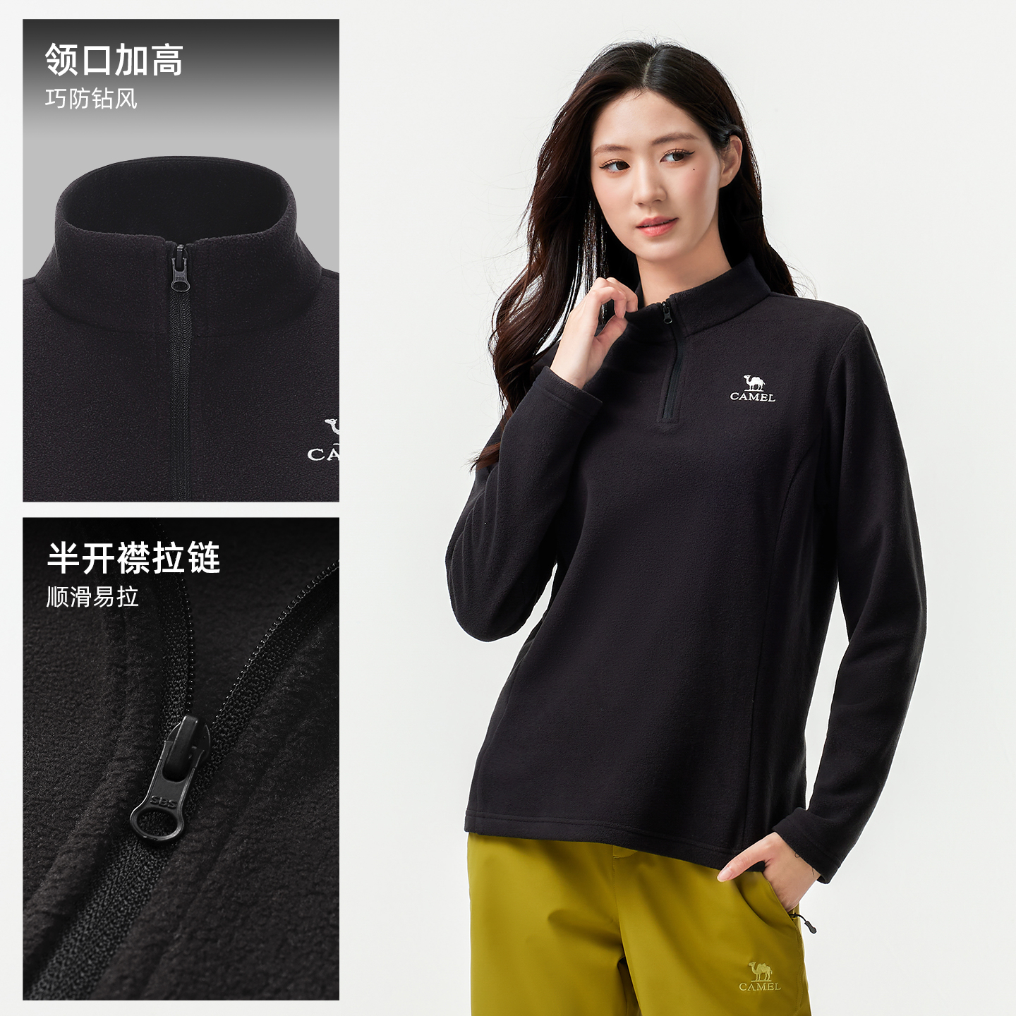 骆驼女装抓绒衣女立领防风加热保暖抗静电冲锋衣内胆摇粒绒外套男