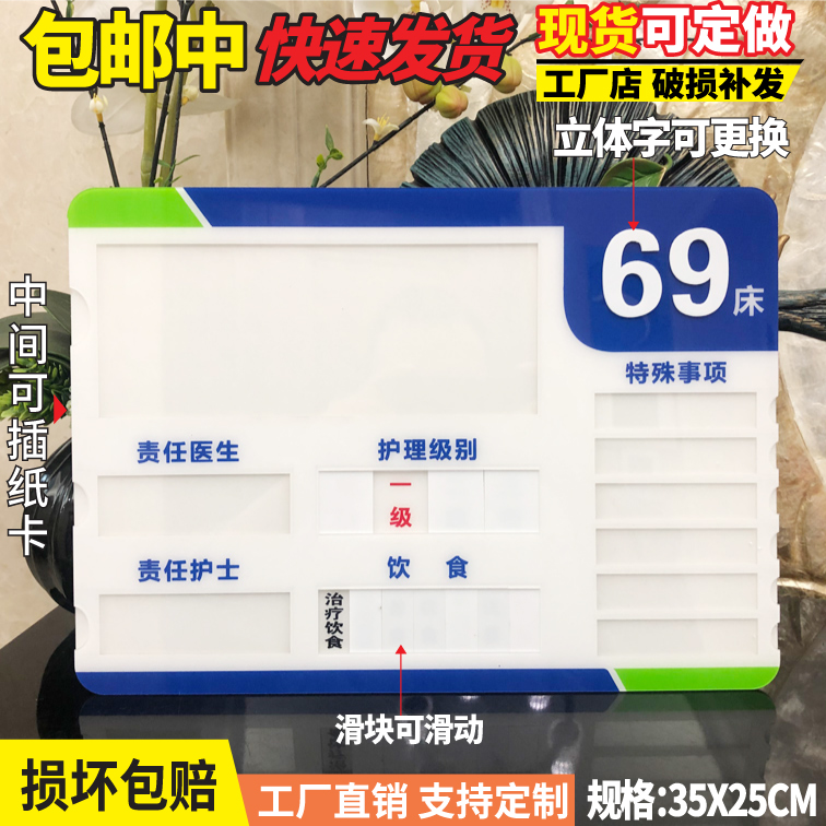 亚克力医院床头牌责任医生护士标牌号码牌床号牌特殊事项牌护理级别饮食滑块状态牌插卡牌