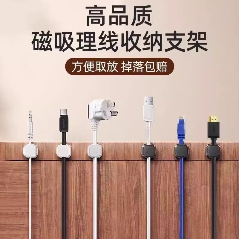数据线磁吸理线器桌面壁挂手机充电线收纳固定器走线卡扣插头挂钩