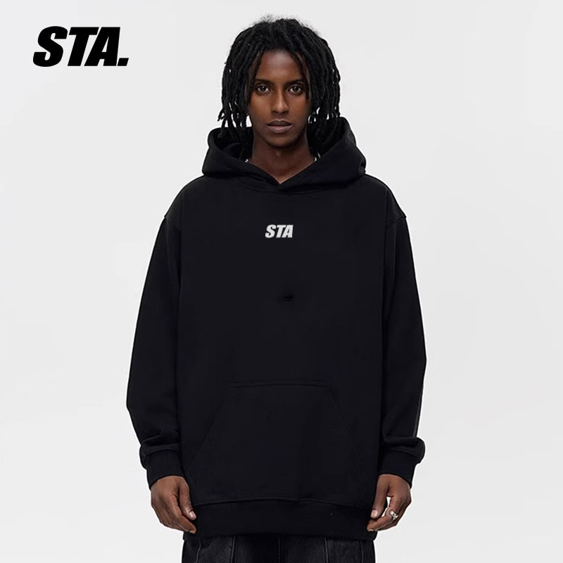 STA 国潮基础小logo图案印花连帽卫衣男女秋冬季美式重磅情侣帽衫