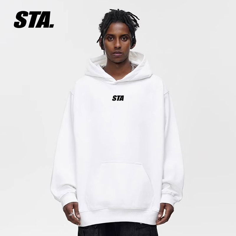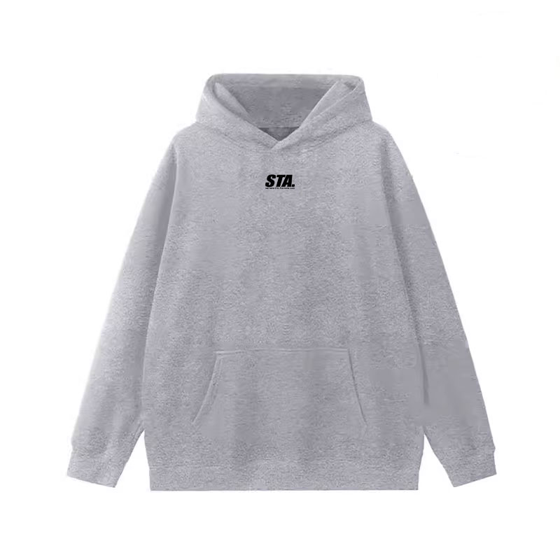 STA旗舰店基础小字母印花连帽卫衣男女美式潮牌重磅纯棉灰色外套