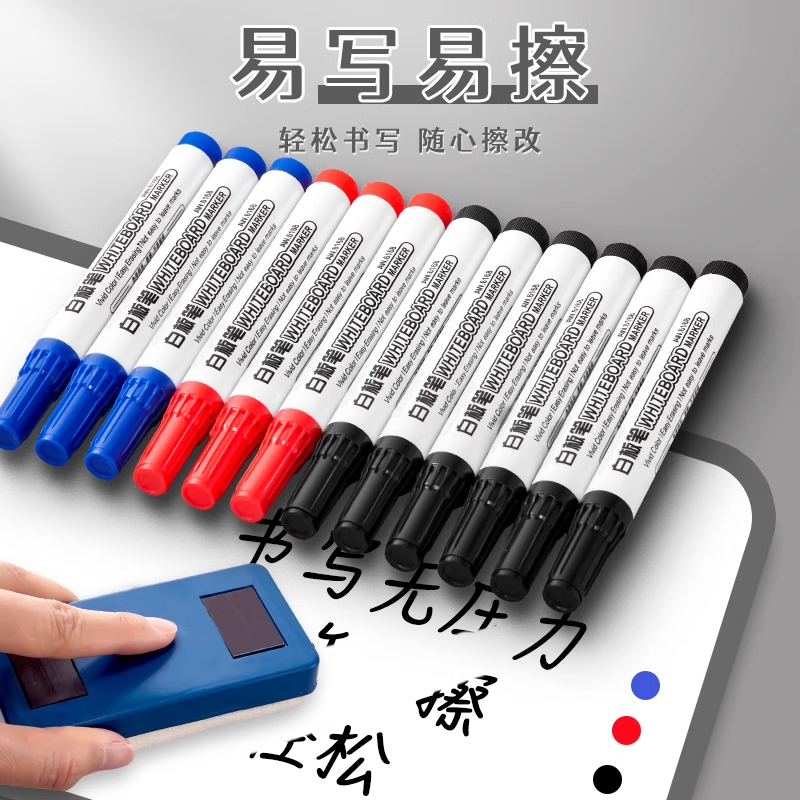白板笔可擦黑板大容量水性黑色记号笔教师用儿童彩色红色蓝色画板写字易擦写粗头大头易写可擦专用细头水笔
