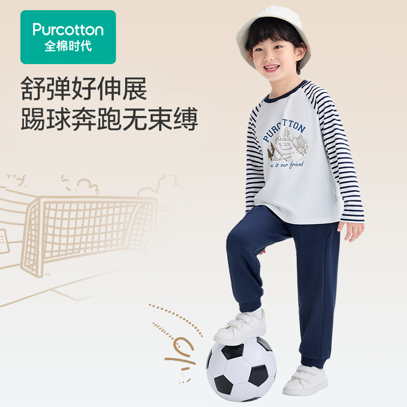 【新品】全棉时代儿童裤子男女童运动裤秋季新款黑色休闲运动裤