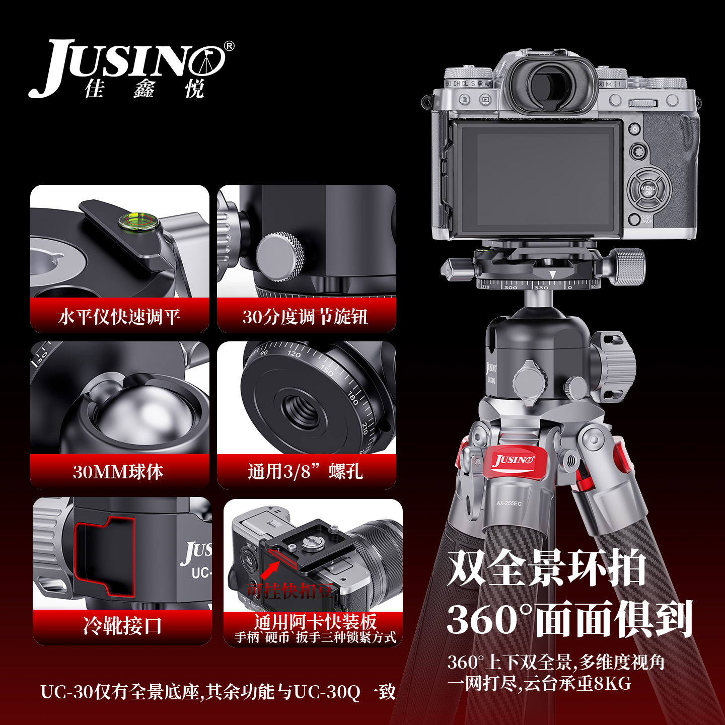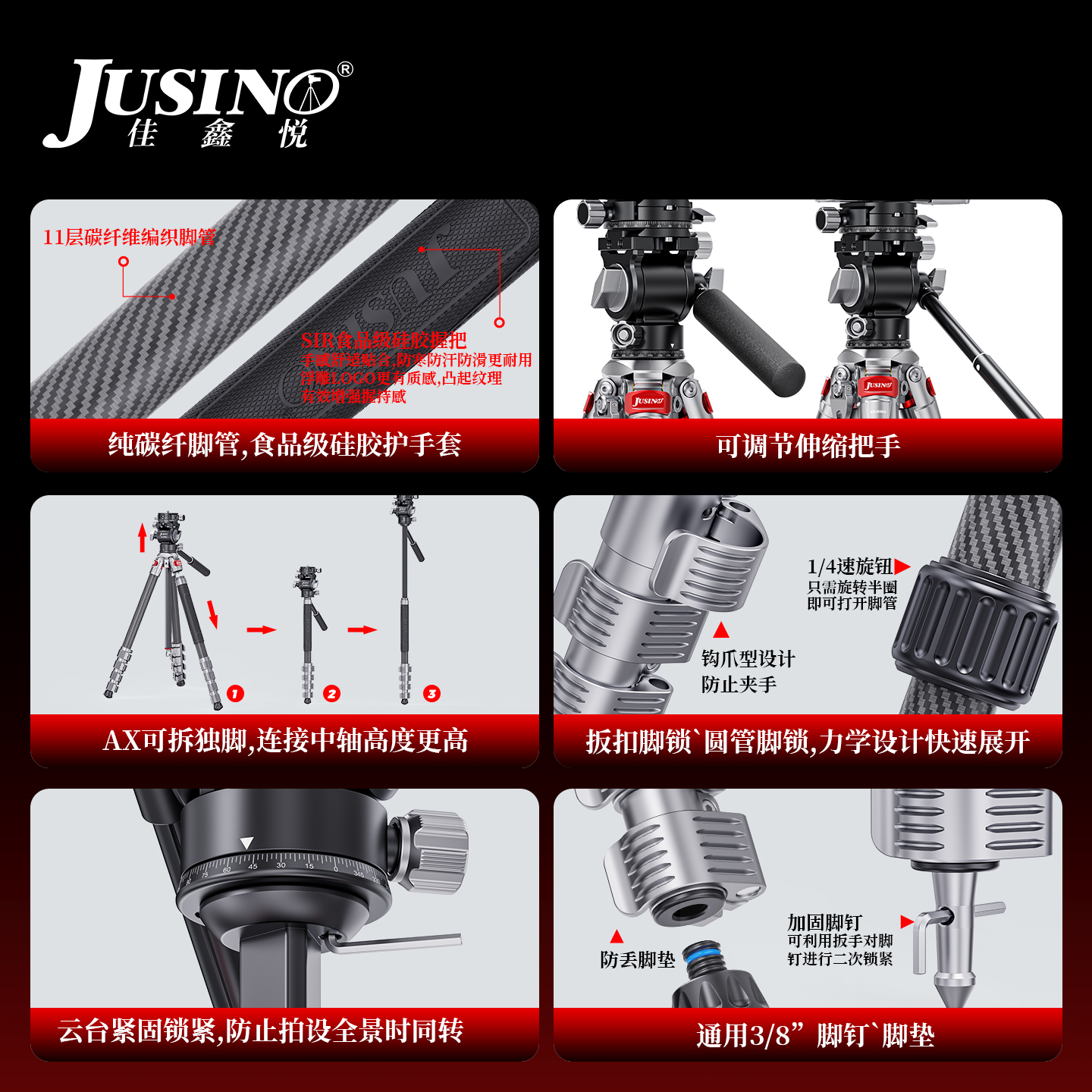 【魔法棒又轻又稳】佳鑫悦AX新升级系列碳纤维扳扣款相机三脚架下沉式便携旅行摄影摄像三脚支架球形云台套装