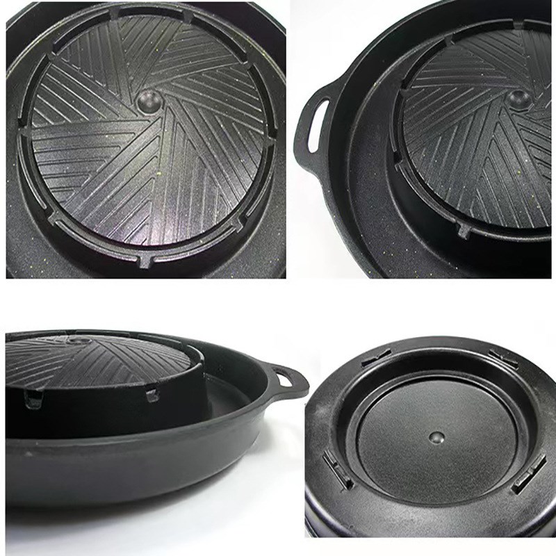 水煎肉烤涮一体鸳鸯锅加深麦饭石烤肉锅明火圆形卡式炉烧烤火锅
