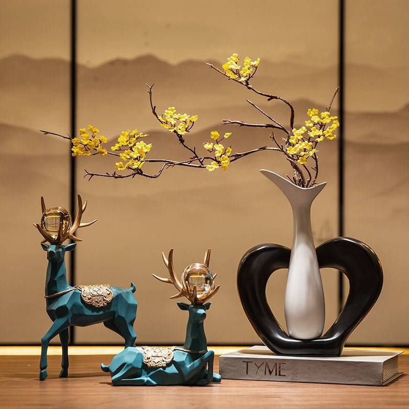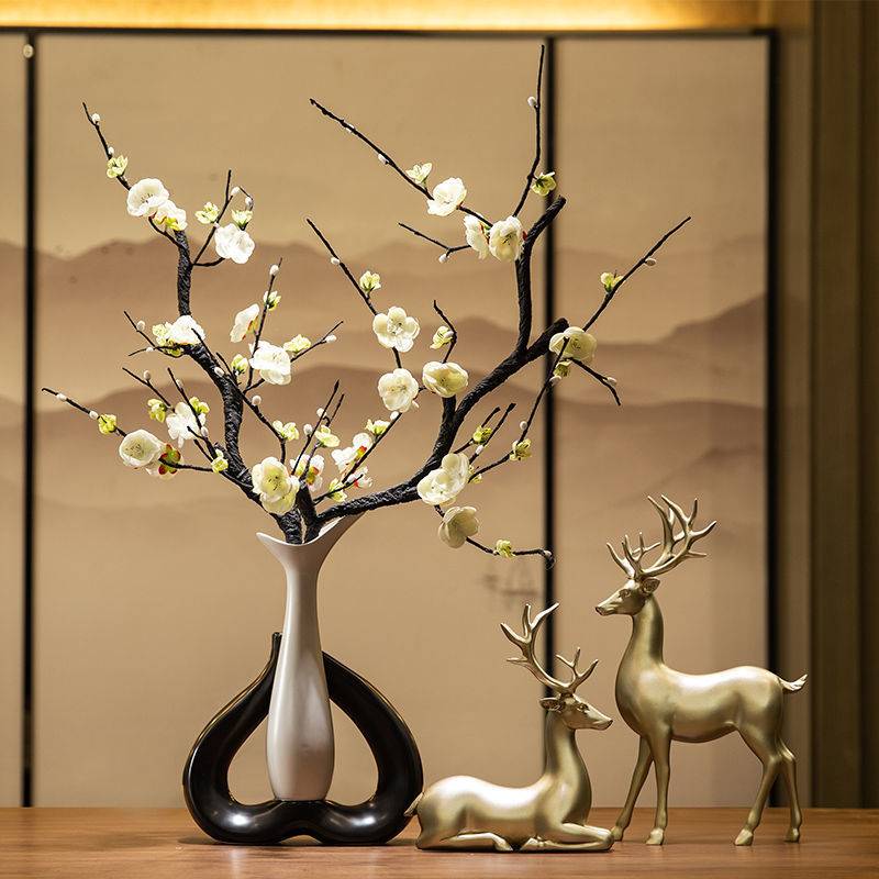 小鹿摆件新中式陶瓷花瓶假花装饰客厅电视柜酒柜餐桌轻奢工艺摆设