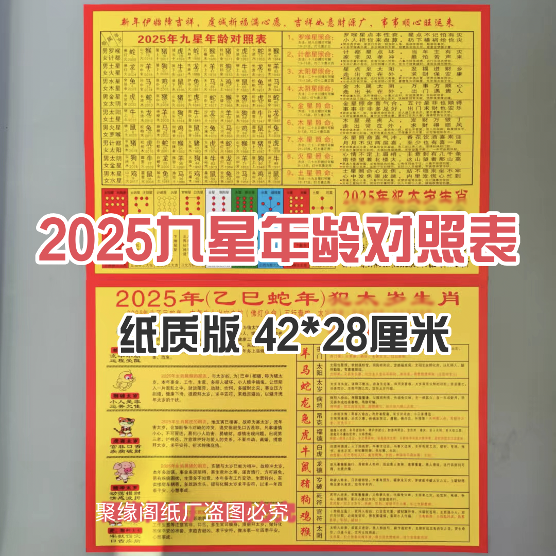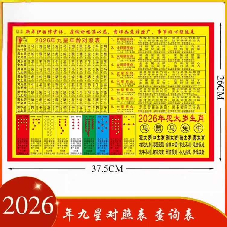 2026年九星年龄对照图纸质版生肖对照图全套九星纸质版查询表包邮