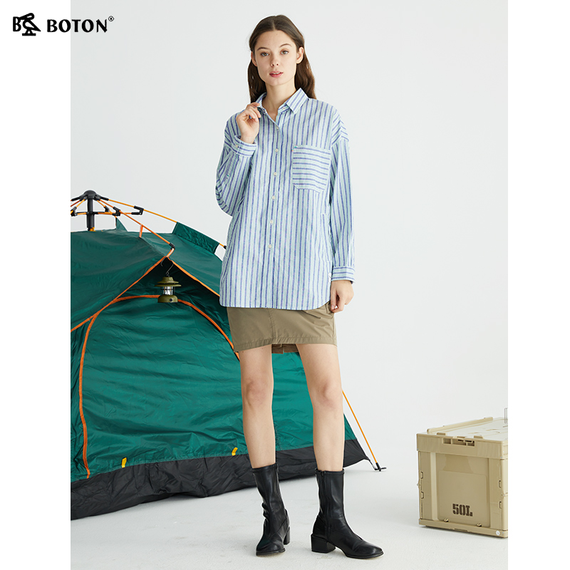 波顿工装A字半身裙女夏季复古时尚宽松气质显瘦系腰后开叉短裙子