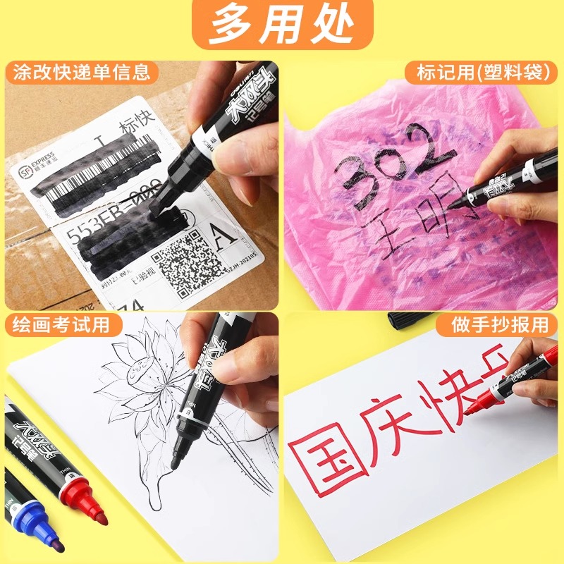 小双头记号笔勾线笔美术生专用快干防水笔油性不掉色快递用大头笔