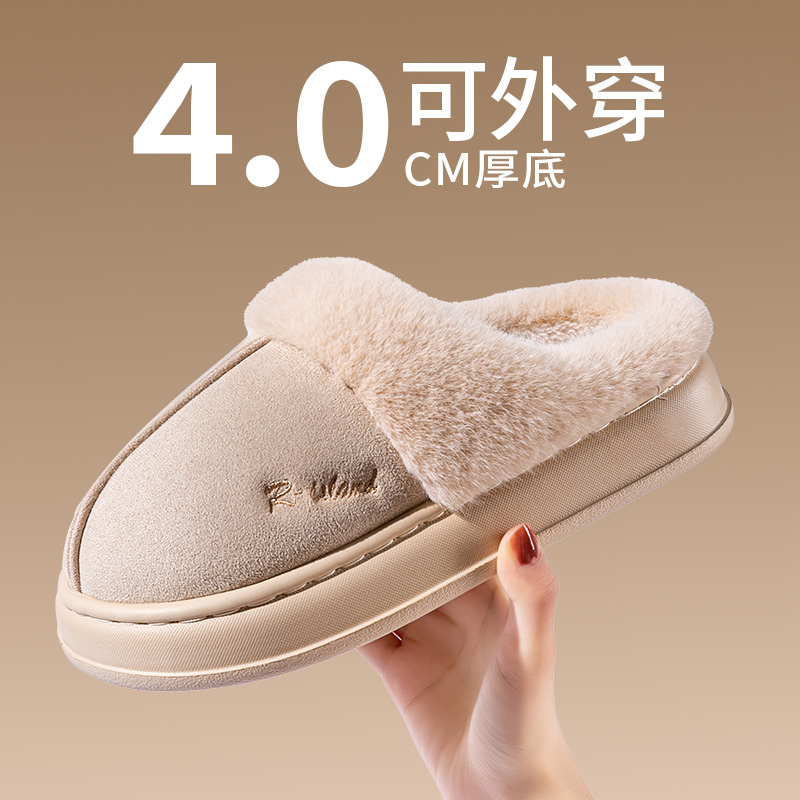 棉拖鞋女士秋冬季室内厚底防滑办公室居家用时尚毛毛棉拖鞋男包根