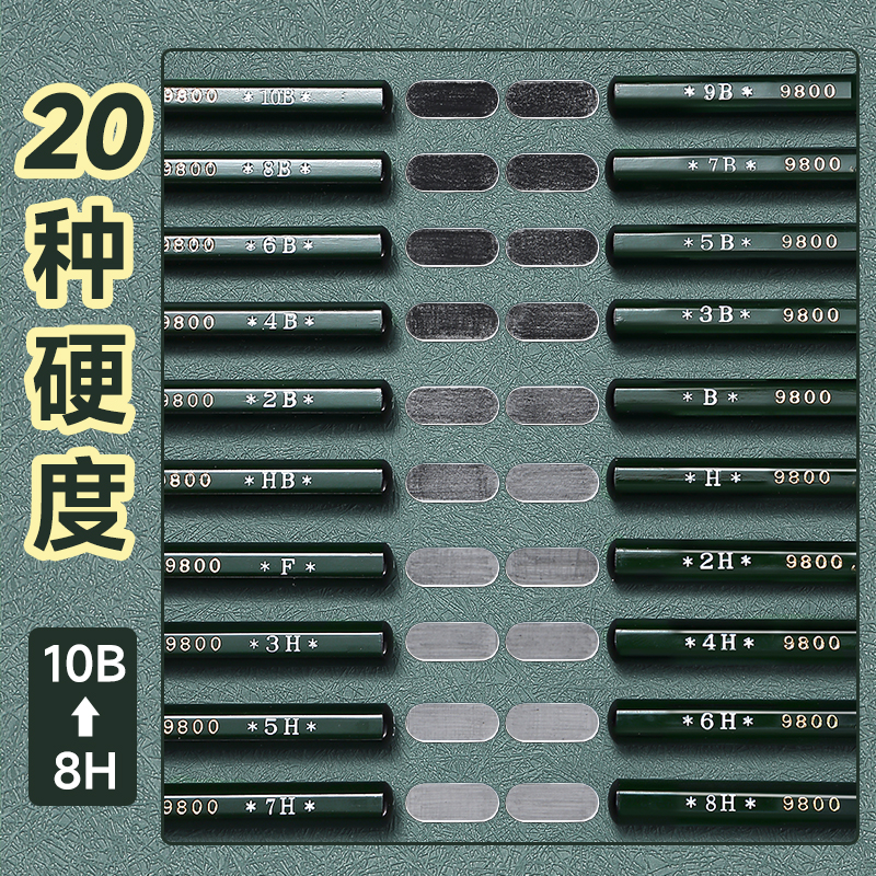三菱铅笔uni三菱9800铅笔mitsubishi绘画专业美术用专2比书写2B/HB/2H/4b全套装炭笔木质头学生日本素描