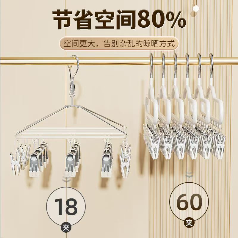 晾衣架多夹子晒袜子神器家用夹凉内衣内裤功能婴儿晾晒专用不锈钢