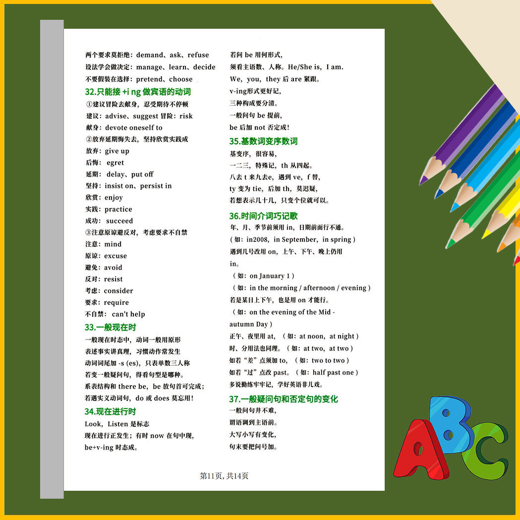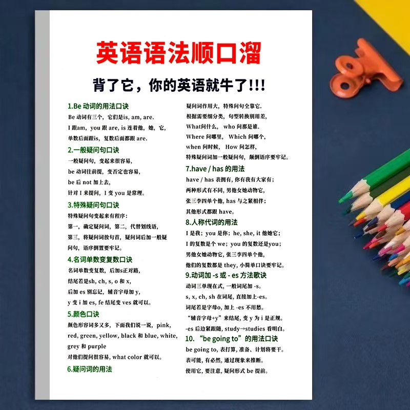 中学生英语语法、语法顺口溜中小学生资料汇总学习用笔记本
