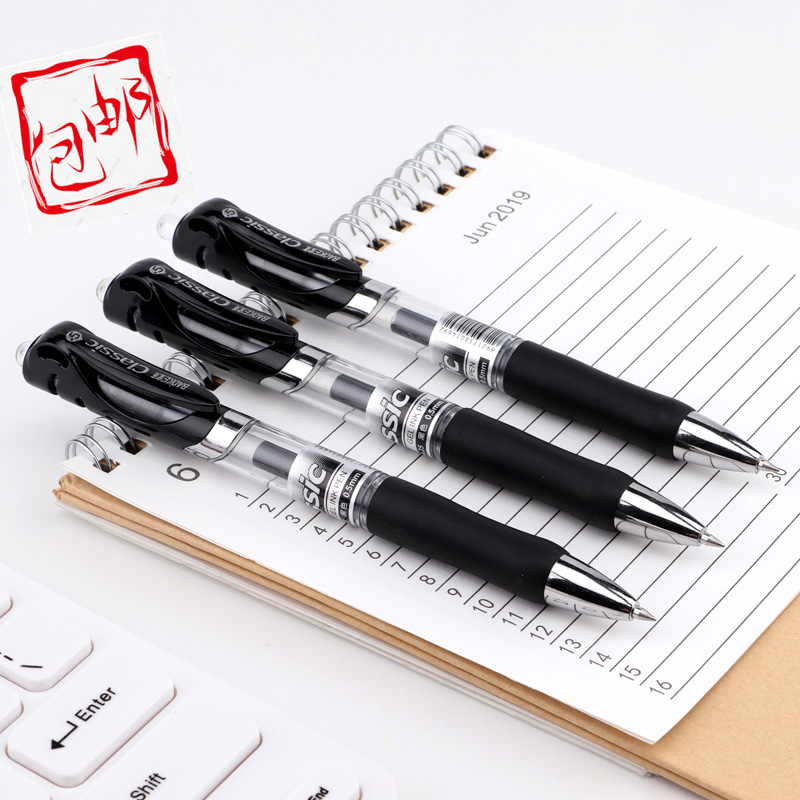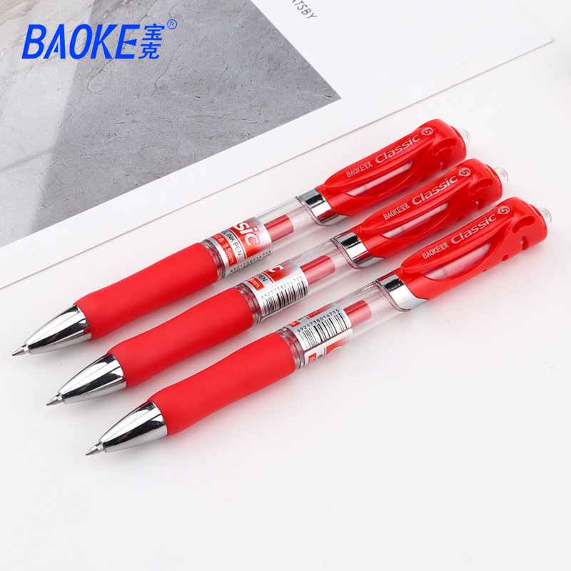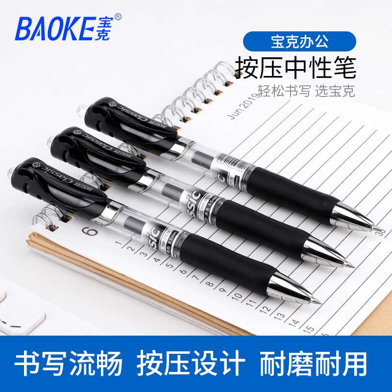 宝克按压式中性笔0.5mm子弹头黑色红蓝签字笔办公笔按动水笔简约