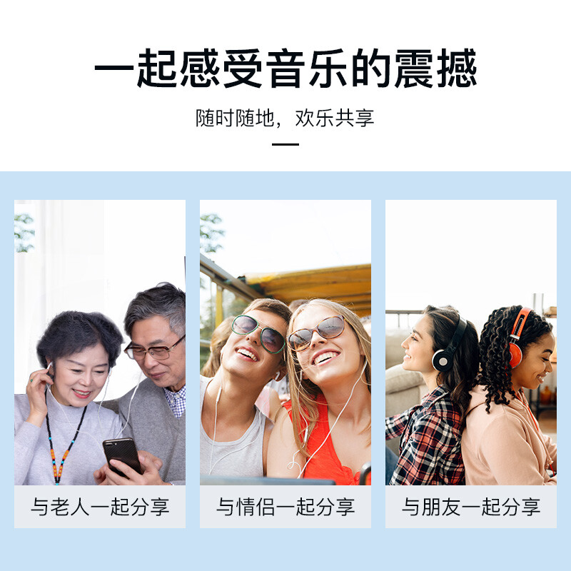 秋叶原耳机分线器一分二音频线手机电脑1拖2接两副耳机情侣分享器