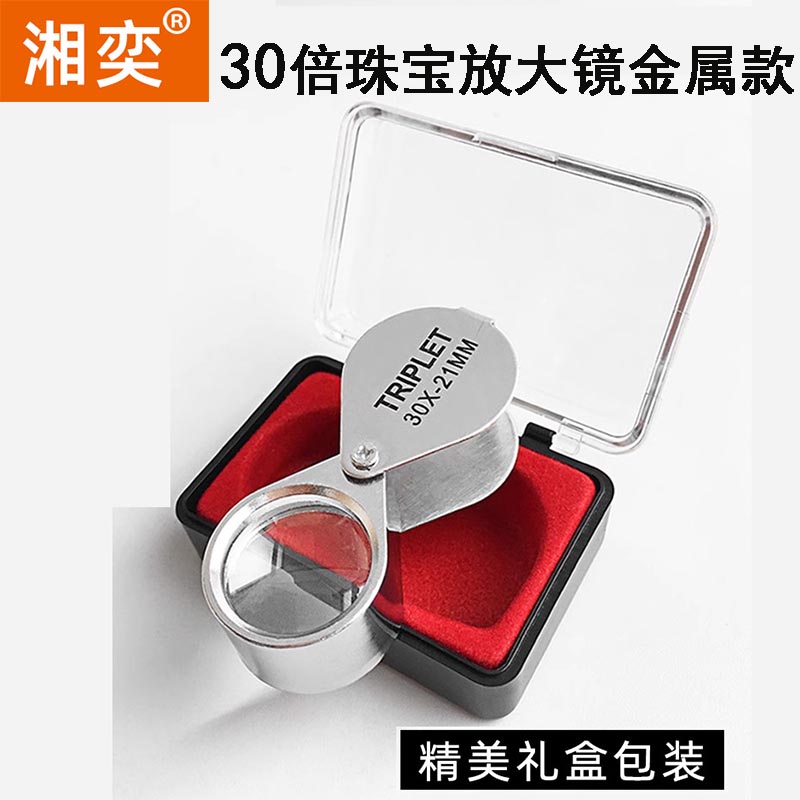 湘奕便携30倍放大镜金属高倍高清20迷你手持式地质文玩珠宝鉴定100扩大放大镜随身携带