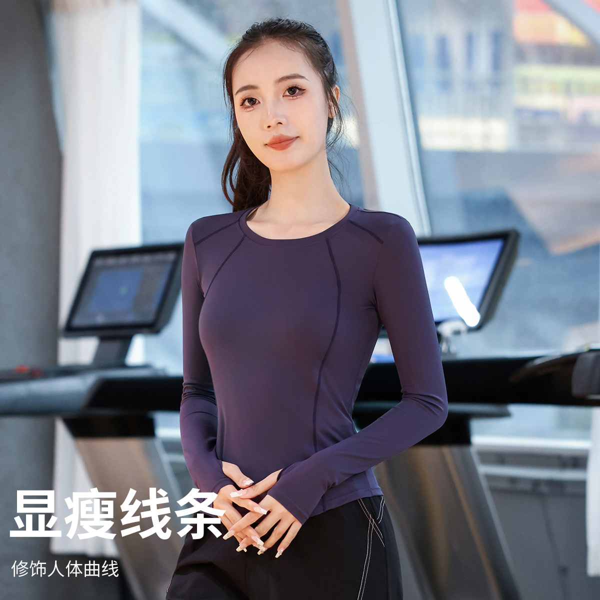 后口袋放手机跑步服女秋冬保暖显瘦健身衣长袖高弹力普提拉瑜伽服