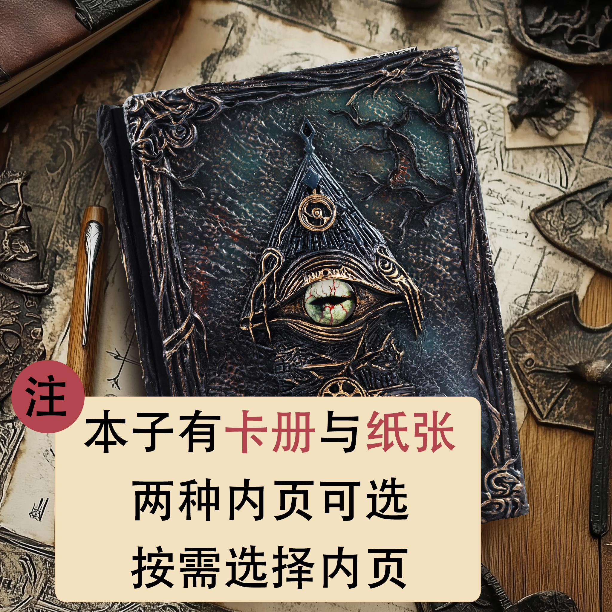 A5活页本子小卡收纳册浮雕复古克苏鲁魔法书手账相册手帐纪念卡册