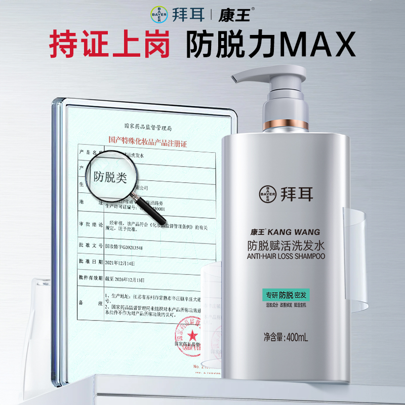 【持证防脱】拜耳康王洗发水防脱控油腺苷固发头皮清洁洗头发露膏