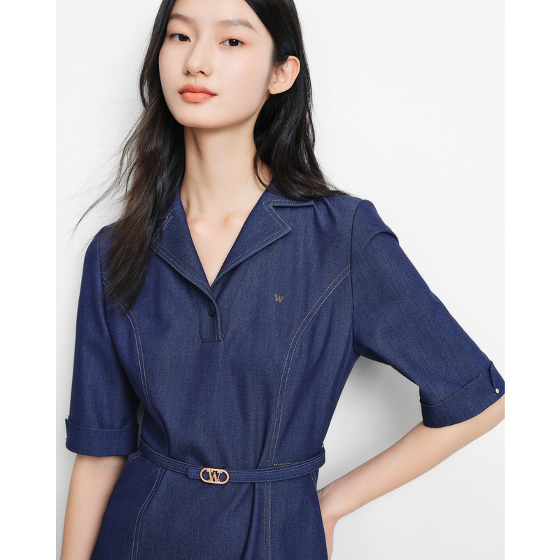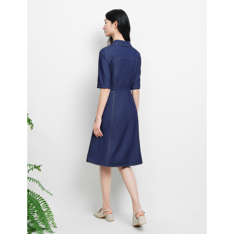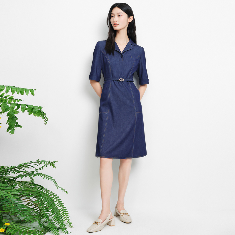 ELSEWHERE珂思[商场同款]牛仔连衣裙女装2025年夏季新款收腰显瘦