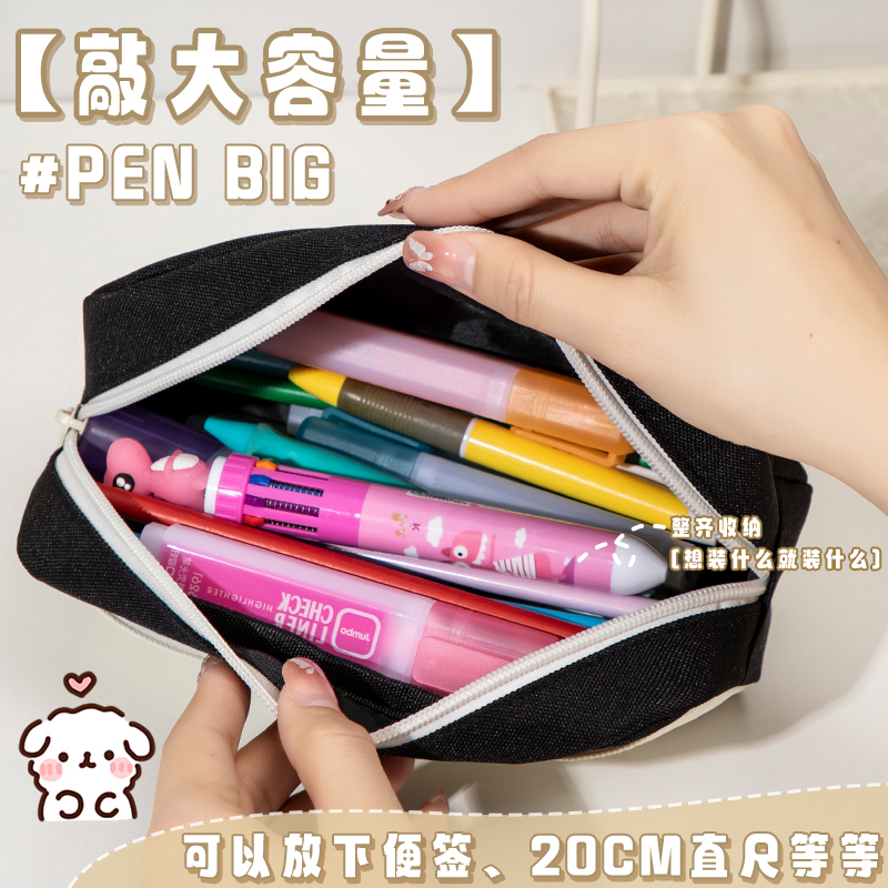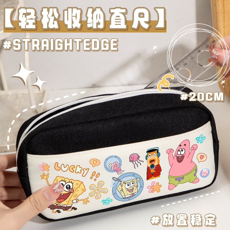 海绵宝宝笔袋小学生初中男女孩一二三到六年级高中女生简约可爱卡通文具袋双层大容量多功能文具铅笔收纳袋女