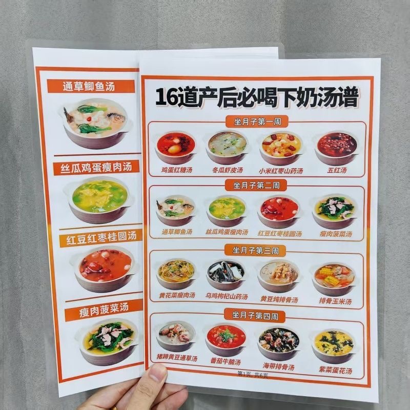 16道产后必喝下奶汤谱宝妈坐月子产后营养汤食谱知识塑挂图认知卡