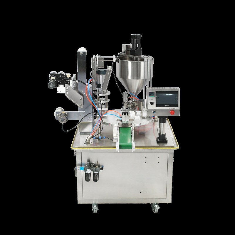 全自动转盘式带料筒搅拌和封口z打码番茄酱酸奶咖啡酱料饮料封杯