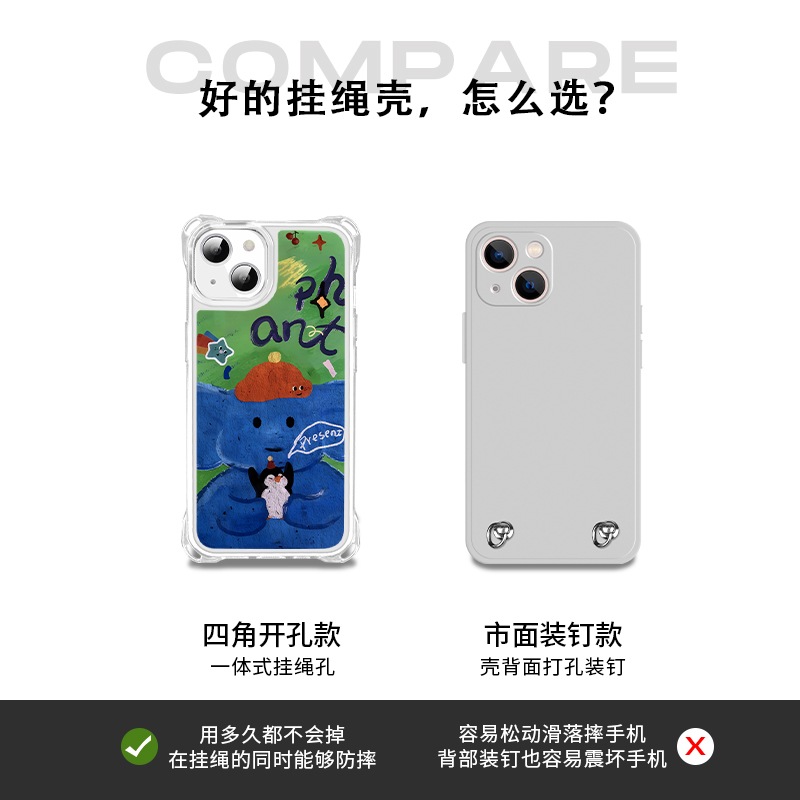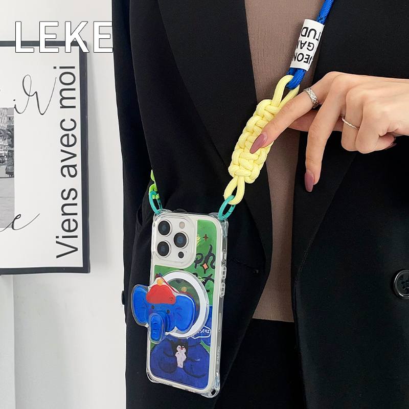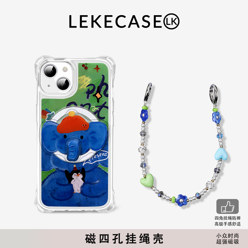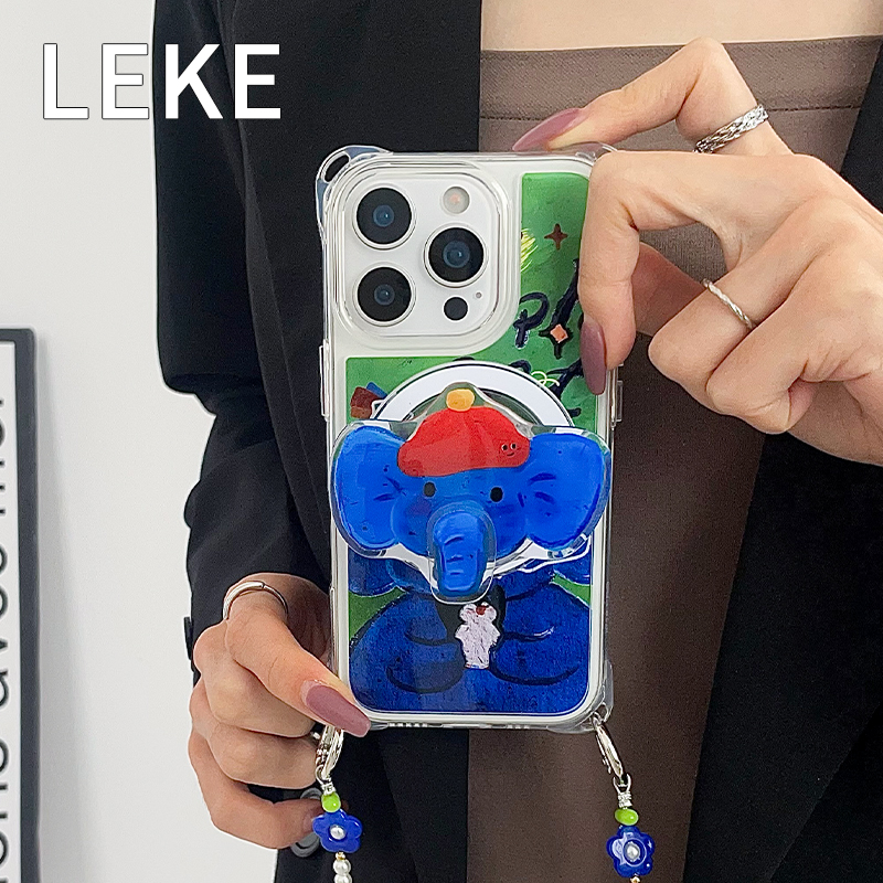 磁吸可爱大象适用苹果15手机壳挂绳斜挎可背iphone16promax四角开孔17带斜跨13链条手提12挂链手腕14旋转支架