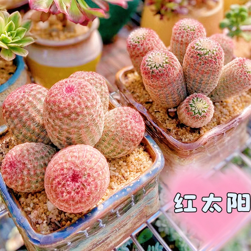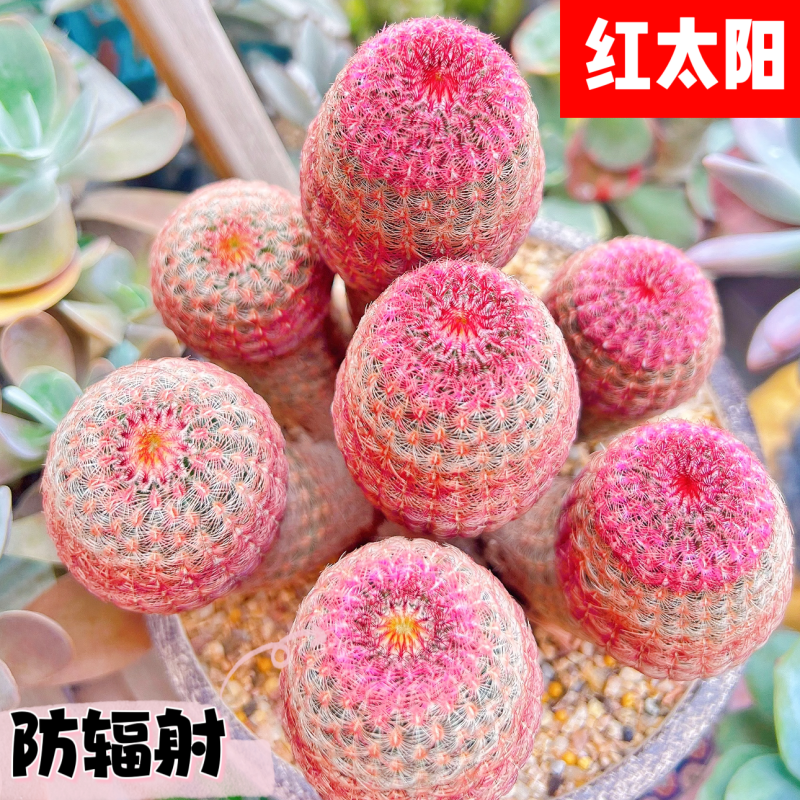红太阳实生仙人球开花懒人好养仙人掌多肉室内办公桌防辐射小盆栽