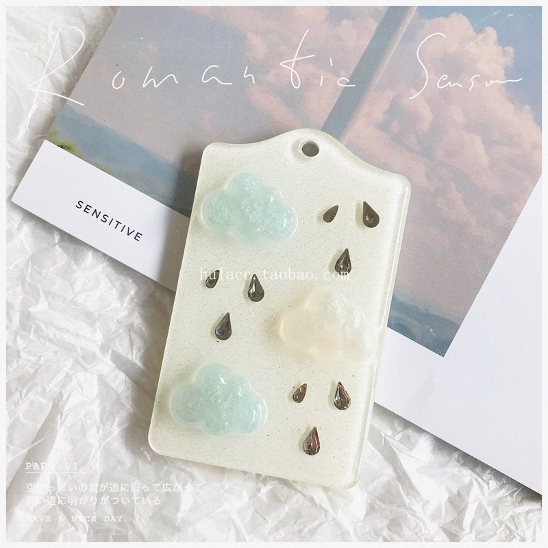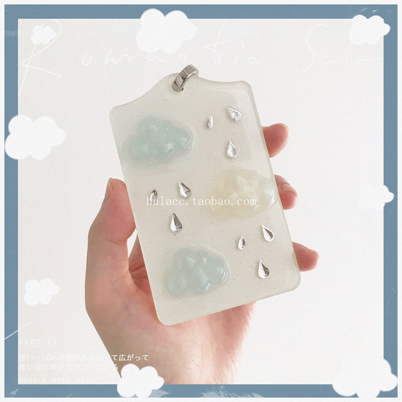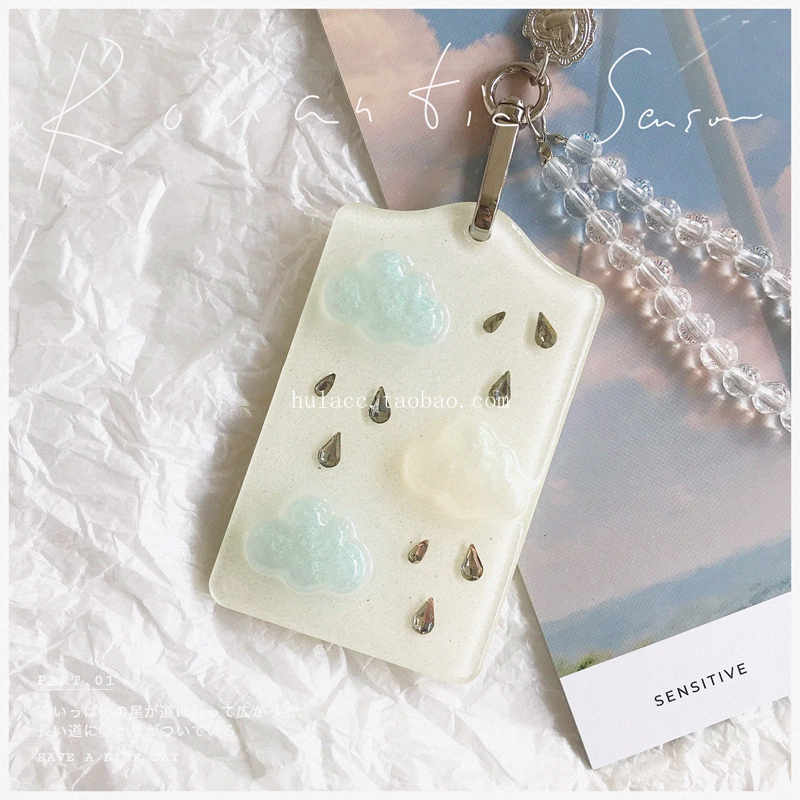 原创可爱云朵公交卡保护套滴胶水钻学生饭卡校园门卡套串珠挂链女