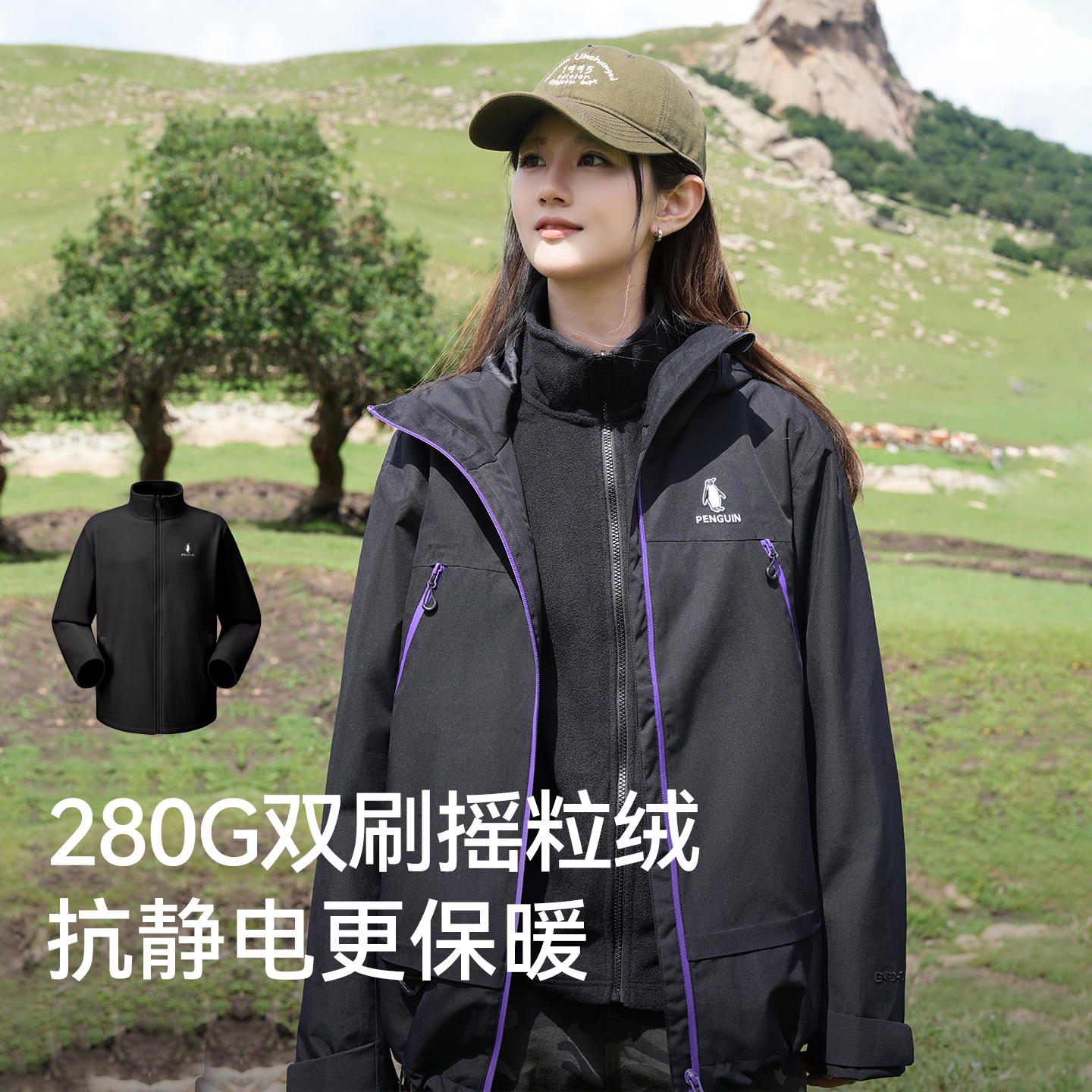 「Baby同款」企鹅风盾2.0三合一冲锋衣2025保暖机能男女运动外套