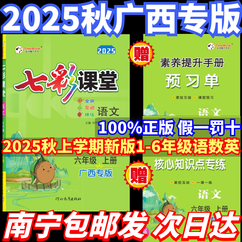 广西专版南宁发货专用七彩课堂2025秋季上册语文数学英语123456年级小学人教版部编外研冀教苏教预习单核心知识点专练练习册同步