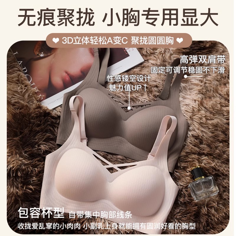 无痕内衣女收副乳聚拢调整型小胸上托防下垂薄款无钢圈美背文胸罩