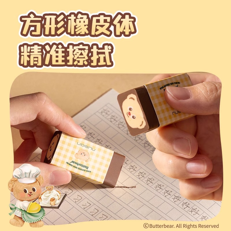 得力真集屑黄油小熊联名擦字成线橡皮橡皮擦干净不留痕小学生可爱卡通夹心象皮高颜值儿童绘画橡皮夹心橡皮