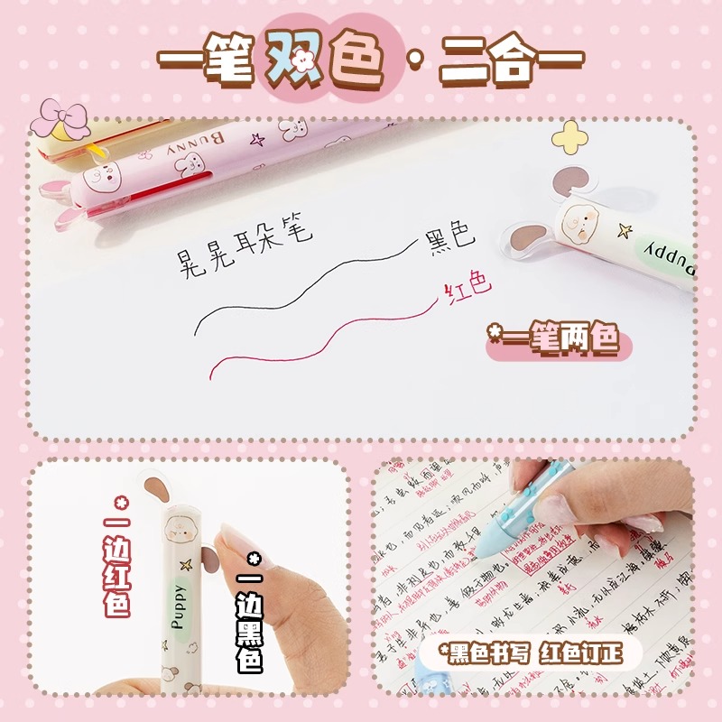 一木林生肖双色中性笔刷题笔高颜值ins风红笔黑笔两色合一多功能按动签字笔0.5学生专用做笔记标注水笔顺滑