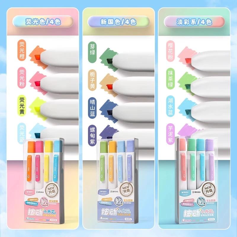 晨光按动荧光笔小学生专用划重点优品小方芯记号笔初中生专用高颜值彩色大容量笔记标记笔学习考研高中生文具