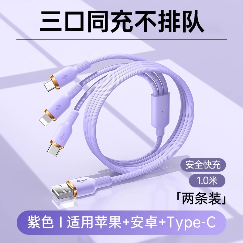 第一卫适用苹果华为vivo安卓数据线三合一充电器线液态快充三头一拖三Typec手机iPhone多头多功能车载通用3