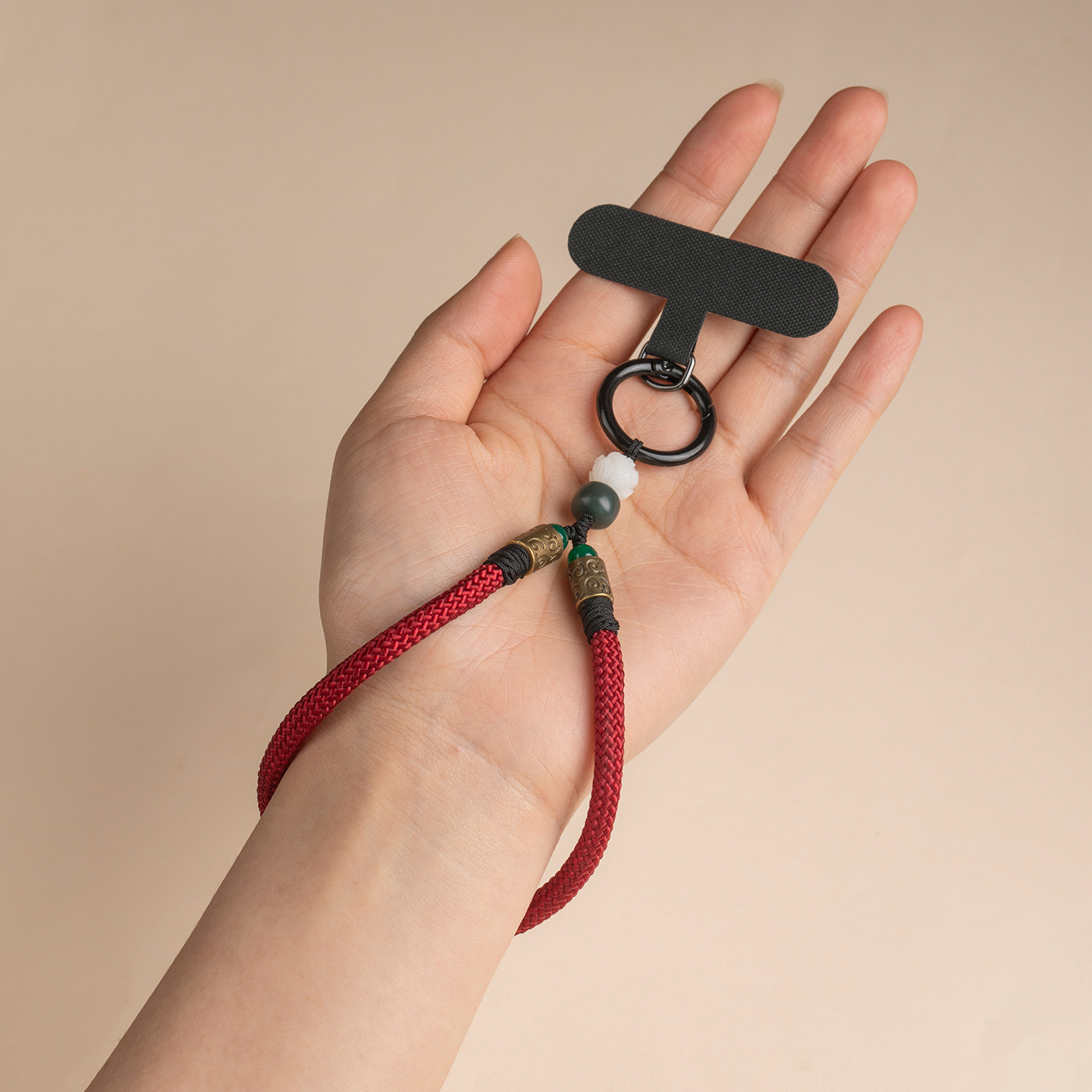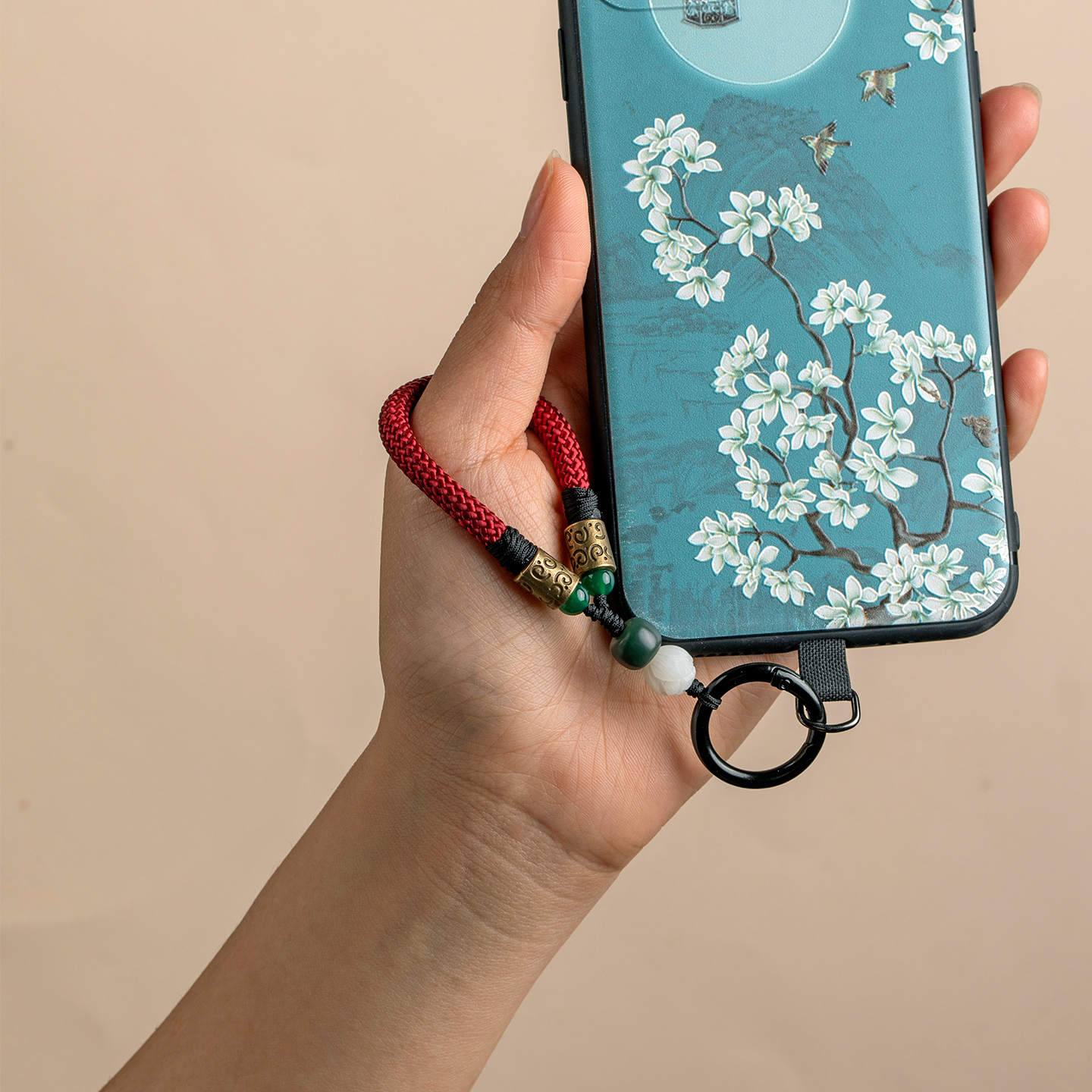 如花手机挂绳ins复古国风编织绳手机壳通用夹片式吊绳短款男女手提手腕绳情侣礼物手绳红绳结实户外出行防摔