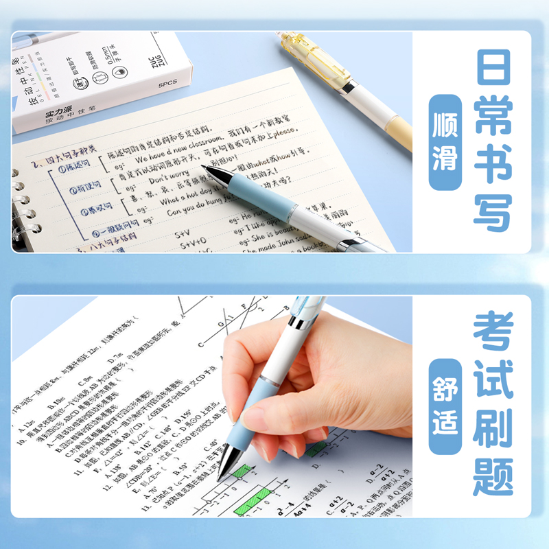 按动中性笔签字笔学生考试专用0.5mm刷题笔教师批改商务办公文具