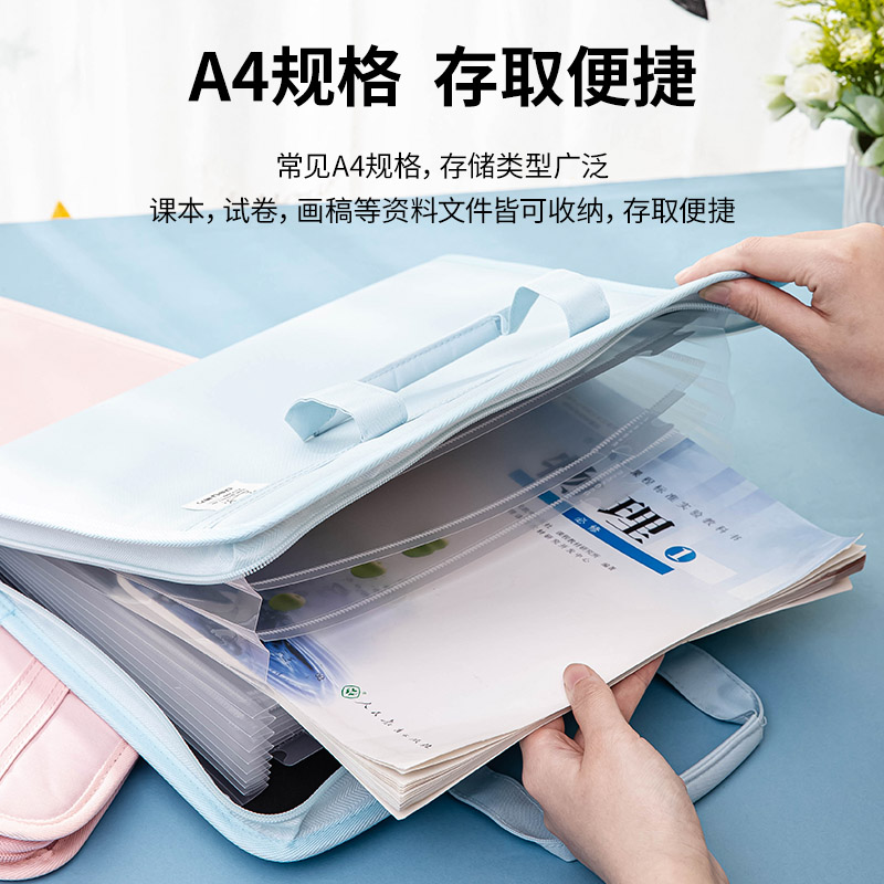 得力风琴包帆布手提文件夹大容量拉链高中生试卷整理收神器资料办公用品档案分类收纳袋风琴收纳包多层文件袋
