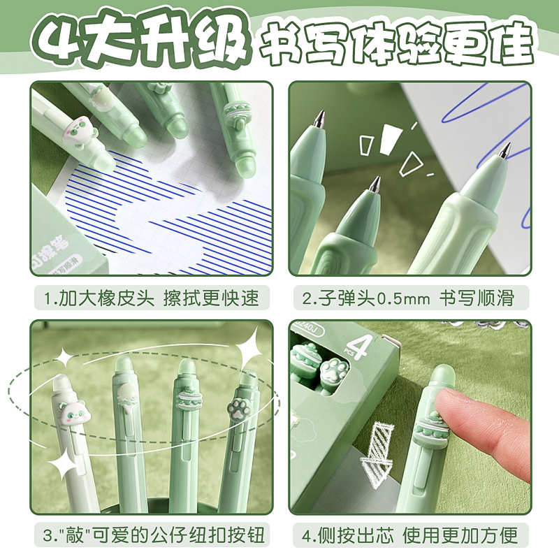 熊有成竹可擦笔小学生专用三年级热可擦按动中性笔黑色晶蓝色高颜值摩易擦魔力擦复写笔水笔圆珠笔笔芯替换芯