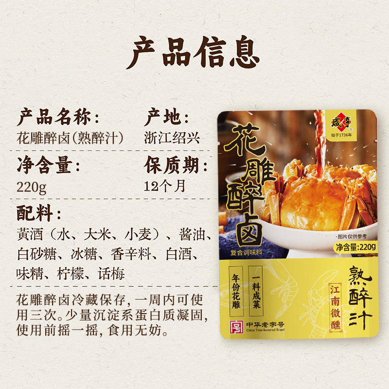 咸亨熟醉汁花雕醉蟹冰镇小龙虾海鲜捞汁冷泡调料汁国货话梅黄酒