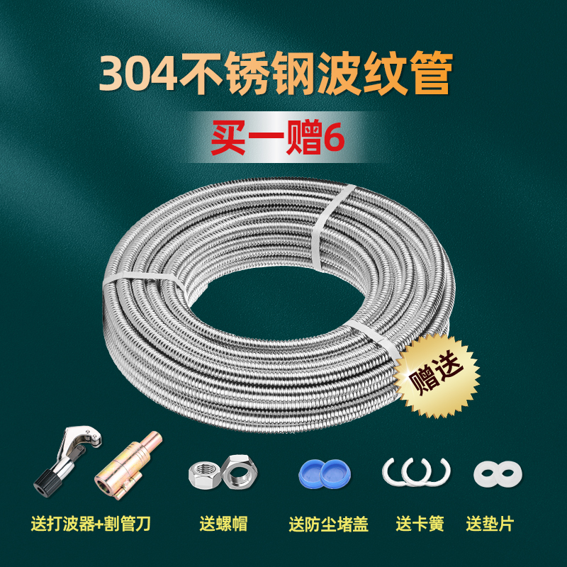 波纹管304不锈钢4分6分1寸进出水管防爆热水器金属软管燃气耐高温