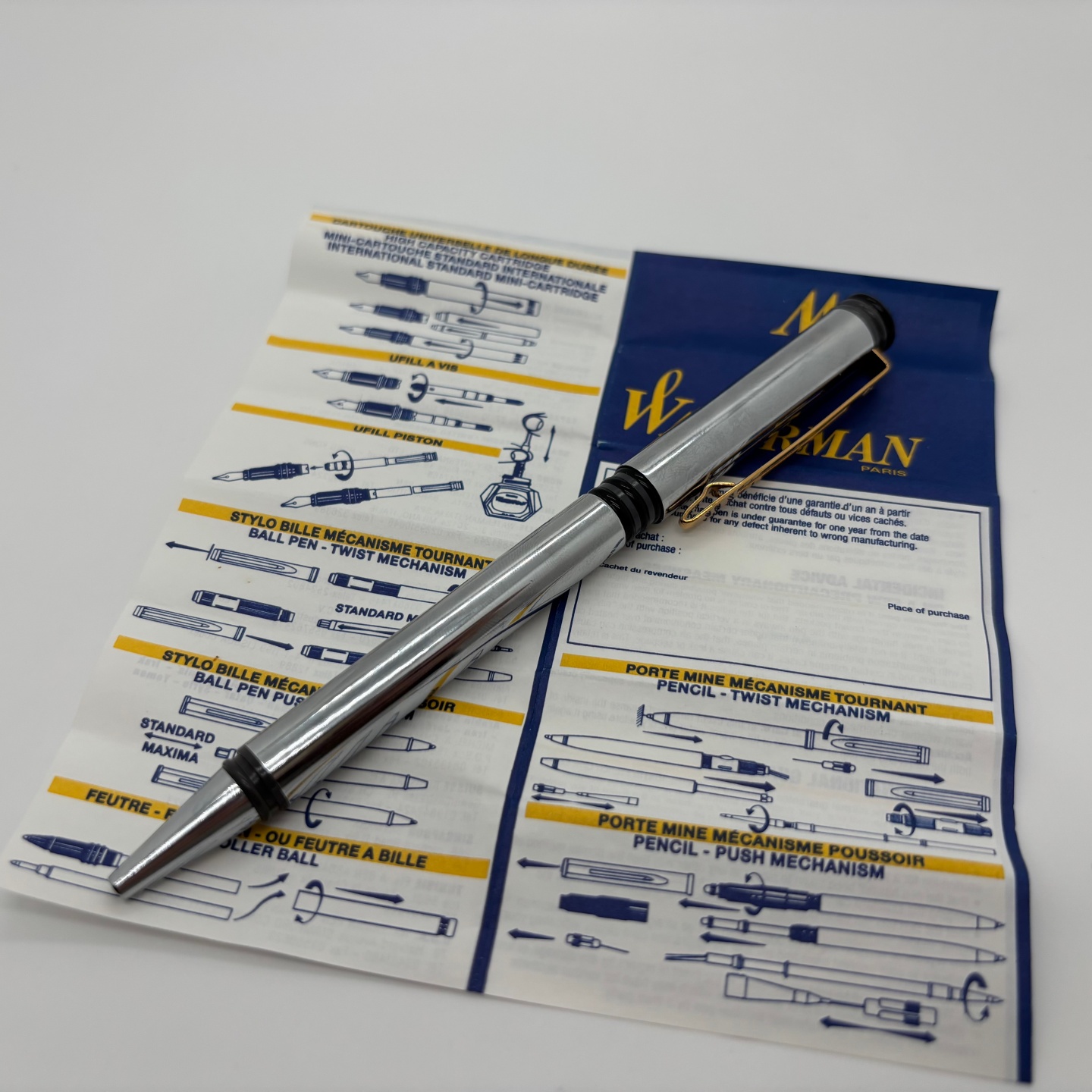 1980年代绝版老款法国WATERMAN威迪文金属亮银按压出芯圆珠笔
